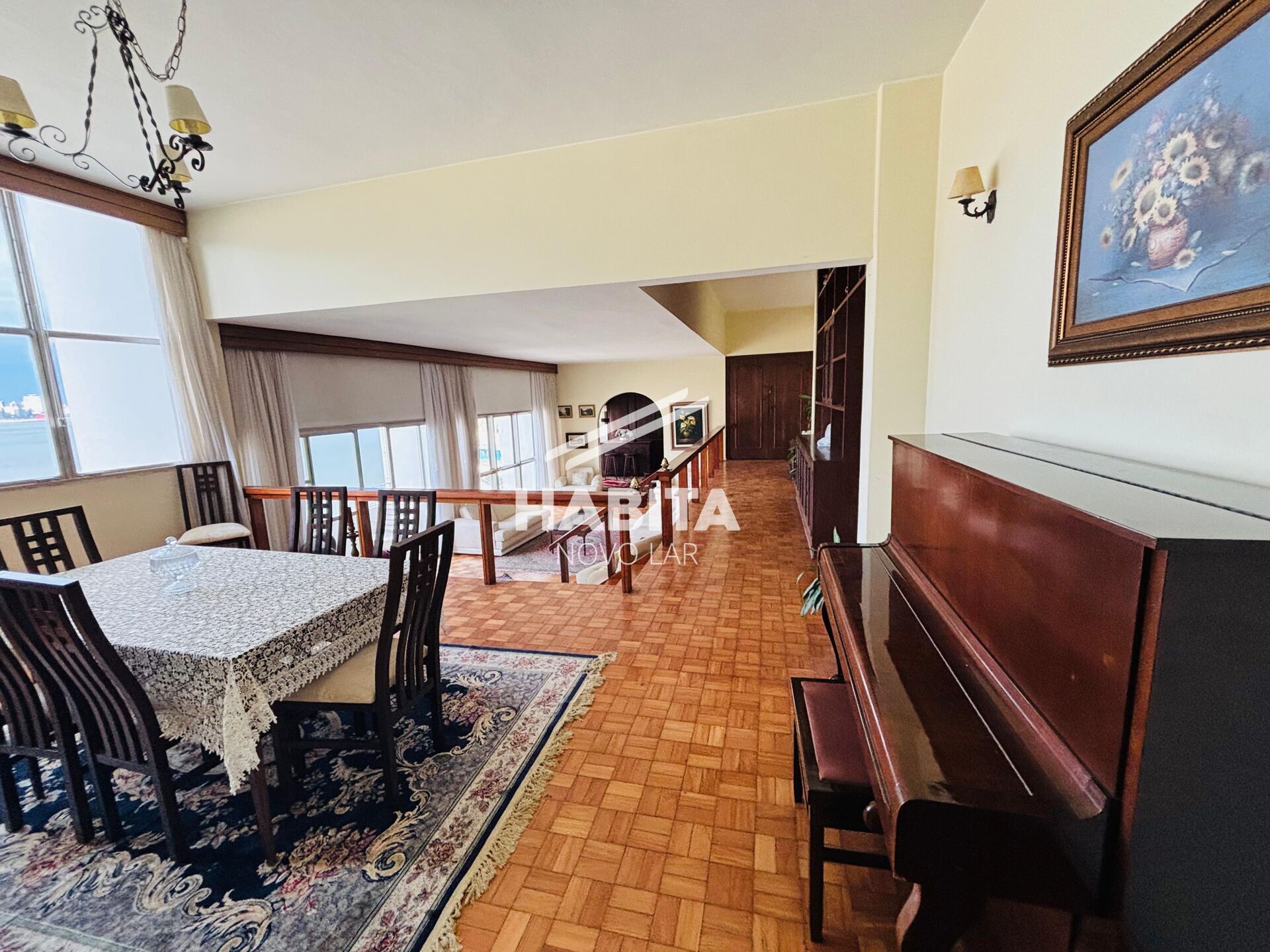 Sala espaçosa com 3 ambientes (estar, jantar e TV)
